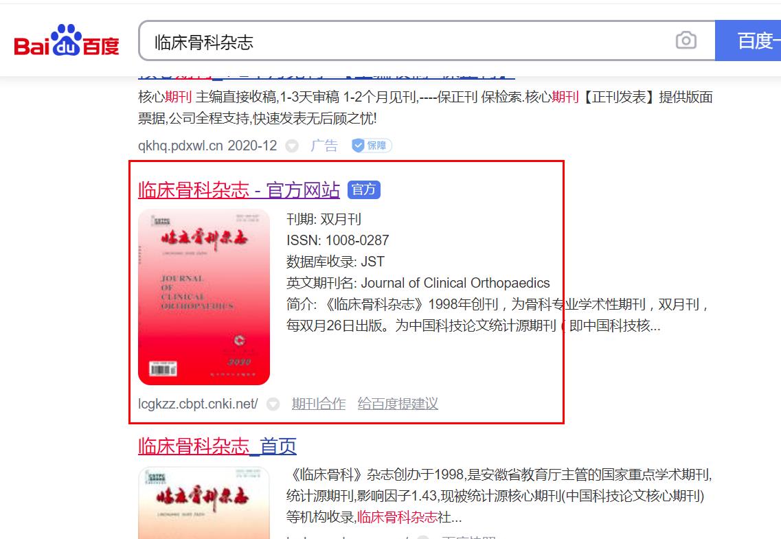 2.在百度页面中搜索“临床骨科杂志”,请认准“官网”字样