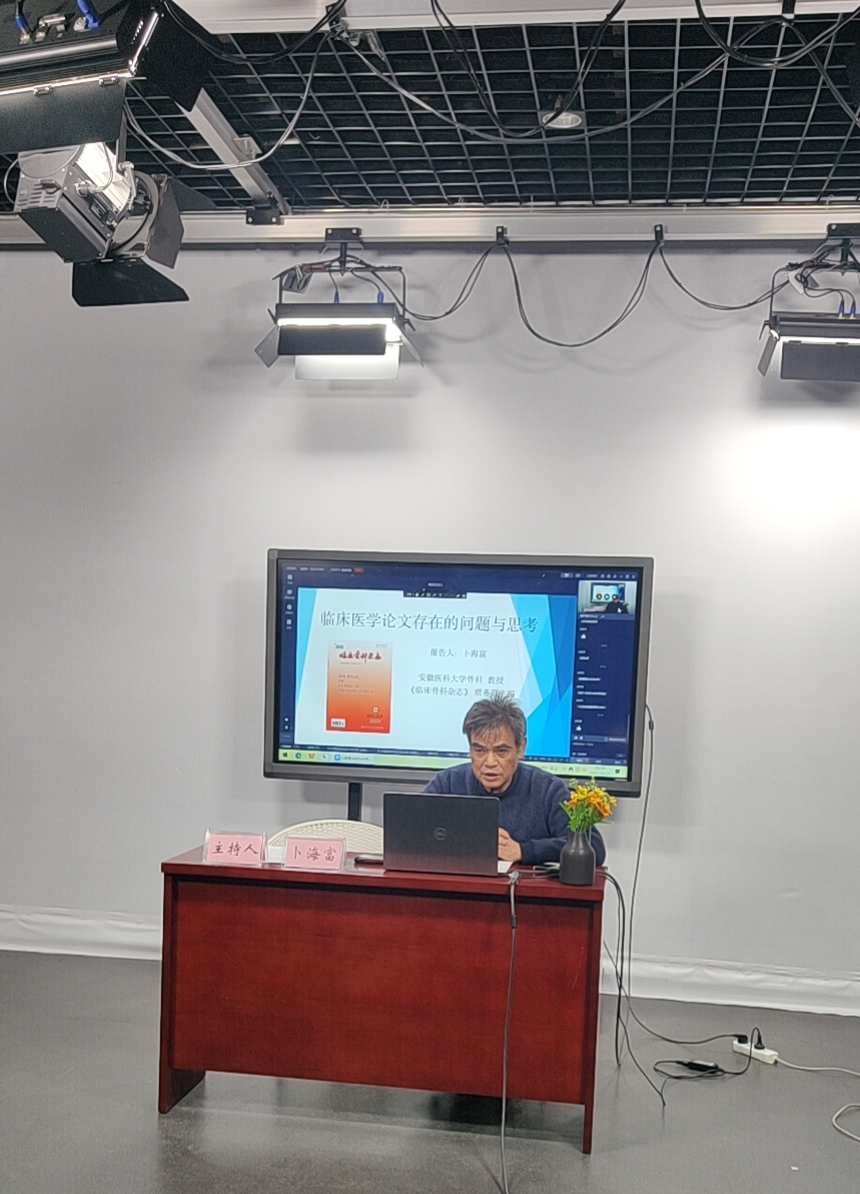 2021年12月31日,我刊编辑部主任卜海富教授做客2021年安徽省科技期刊编辑学会培训班直播间,为全省编辑工作者带来了一场题为《临床医学论文存在的问题与思路》的授课,他从杂志的意识形态建设、数据造假的鉴别、杂志的引领作用等方面做了深刻的阐释,获得同行的一致认可。